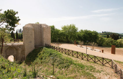 The Poggio Imperiale Medici Fortress completes this effect of magical suspension in time, surrounding the Archeodromo, archeological dig sites, and Keep. Built between 1488 and 1511 by Giuliano da Sangallo for Lorenzo the Magnificent, the building remained incomplete due to the death of Lorenzo and for the many conflicts between Siena and Florence. The structure is made up of the fortress itself and the brick city wall circling it, which extends over one kilometer. The only entrance is adorned with a drawbridge, and it is over this bridge that you must cross to reach the last stop in our trip back to the Middle Ages.