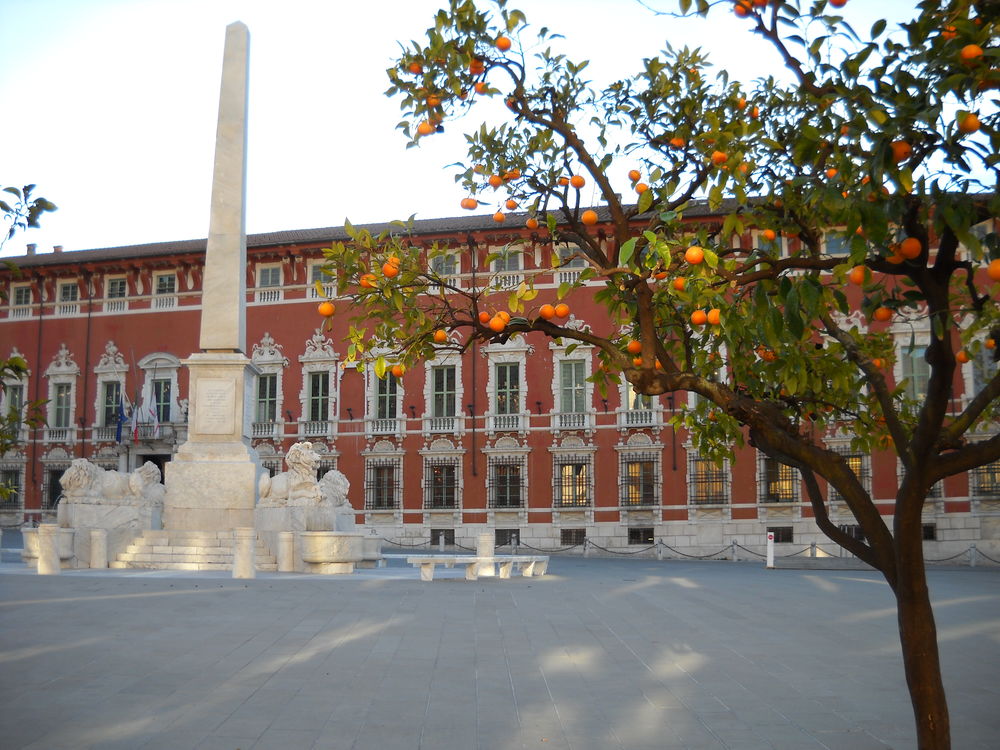 Da alcuni anni, infatti, un doppio filare di alberi di arancio era stato "piantato in terra", non in serre o cortili protetti, a coronamento della nuova piazza pubblica voluta da Elisa Baciocchi, sorella di Napoleone e duchessa di Massa, quale fronte adeguato per la monumentale facciata barocca del Palazzo Ducale.