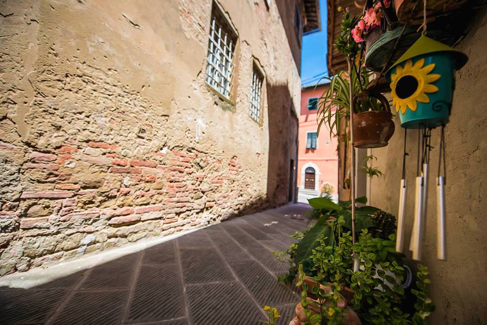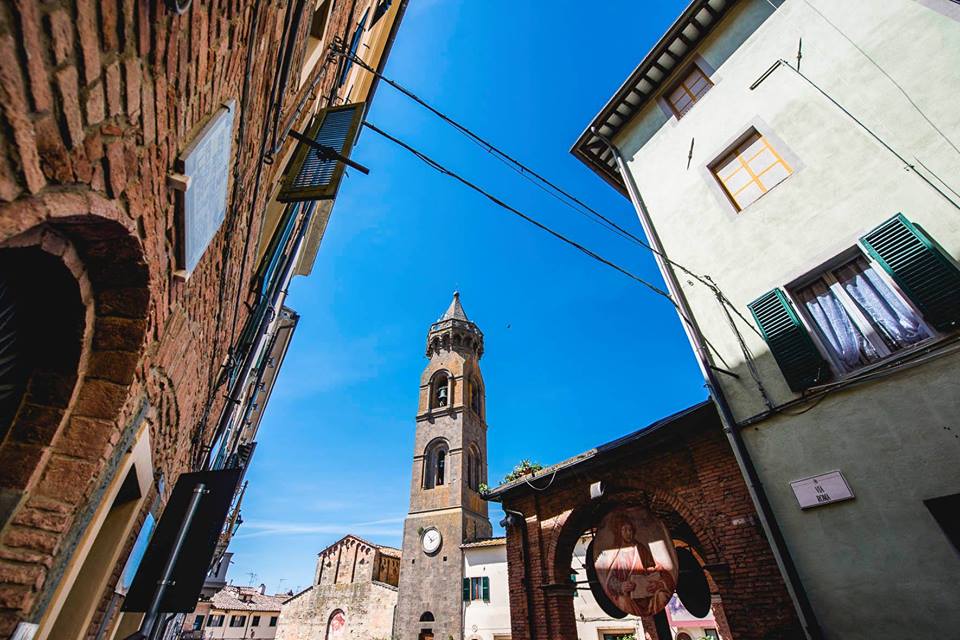 Proseguiamo la nostra passeggiata fino a Libbiano: qui ci fermiamo a guardar le stelle dai telescopi del Centro Astronomico Galilei, da cui nel 2006 venne scoperto un asteroide che porta proprio il nome di Peccioli. Ci incamminiamo lungo una via sterrata e immersa nel verde. A fianco, il consueto panorama collinare, ormai complice del nostro viaggio. Tra i poggi, svettano quiete le pale eoliche col loro moto pacato e incessante. Arriviamo a Legoli, di fronte al monumentale tabernacolo di Benozzo Gozzoli affrescato tra il 1479 e il 1480 e custodito nella Cappella di Santa Caterina.